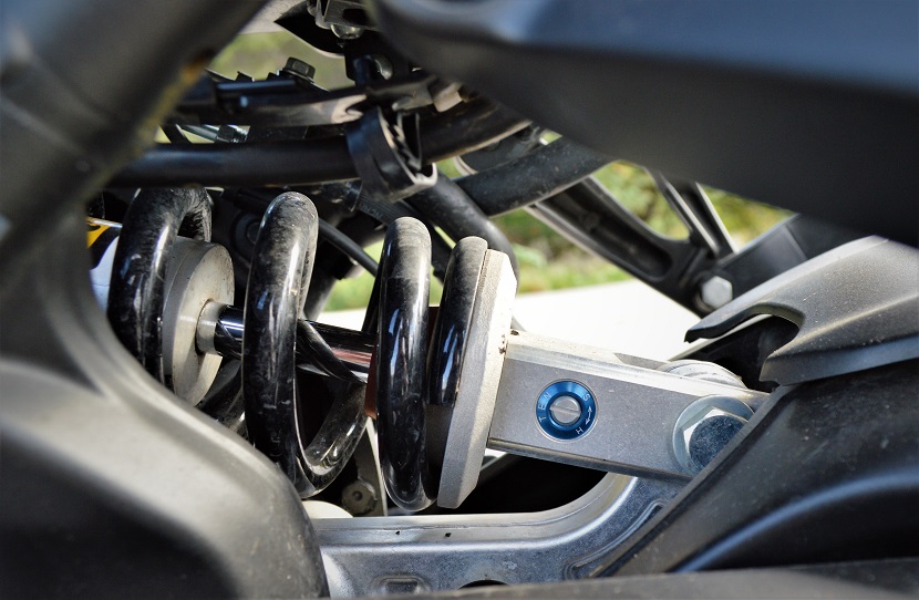 Όπως σας είχαμε αναφέρει και στην δοκιμή της μοτοσυκλέτας που είχαμε κάνει στο Πήλιο το μοντέλο κουβαλούσε ένα μελανό σημείο που λεγόταν ανάρτηση, στο πίσω αμορτισέρ ήταν υπερβολικά προφορτισμένο το ελατήριο και ακόμα και στην πλήρη αποφόρτιση του δεν άφηνε κανένα περιθώριο για σαγκ (αρνητική διαδρομή ανάρτησης 1/10 από την πλήρη διαδρομή της) παράλληλα η απόσβεση επαναφοράς ήταν σε μέτριο επίπεδο.